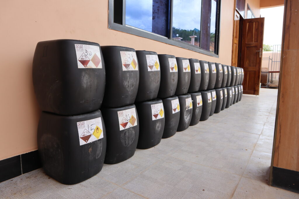 We analyze the content of these metals in samples from processing plant mining, water sources, soil, factory, and farming area.